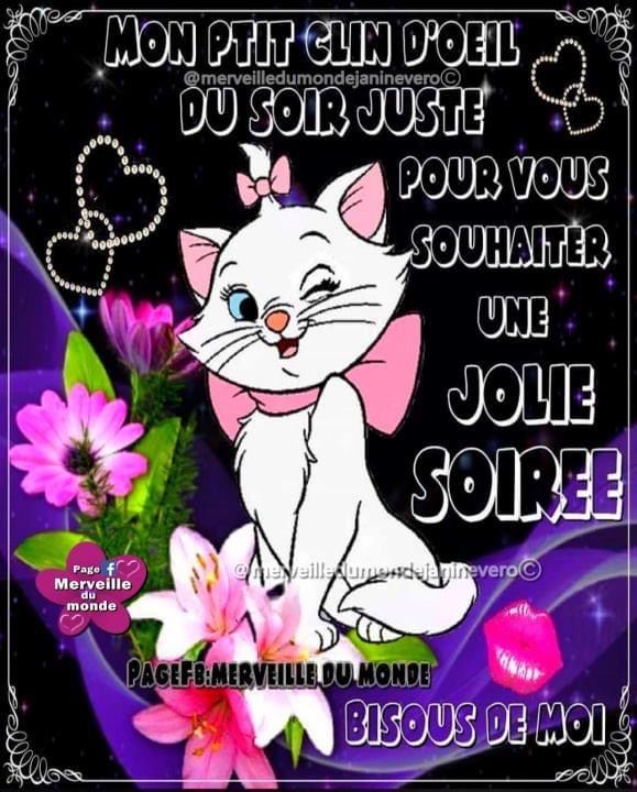 Je voulais aussi te souhaiter un très bon dimanche pour te reposer et me revenir lundi en forme, mais également une très bonne soirée de la part de ton chat !!